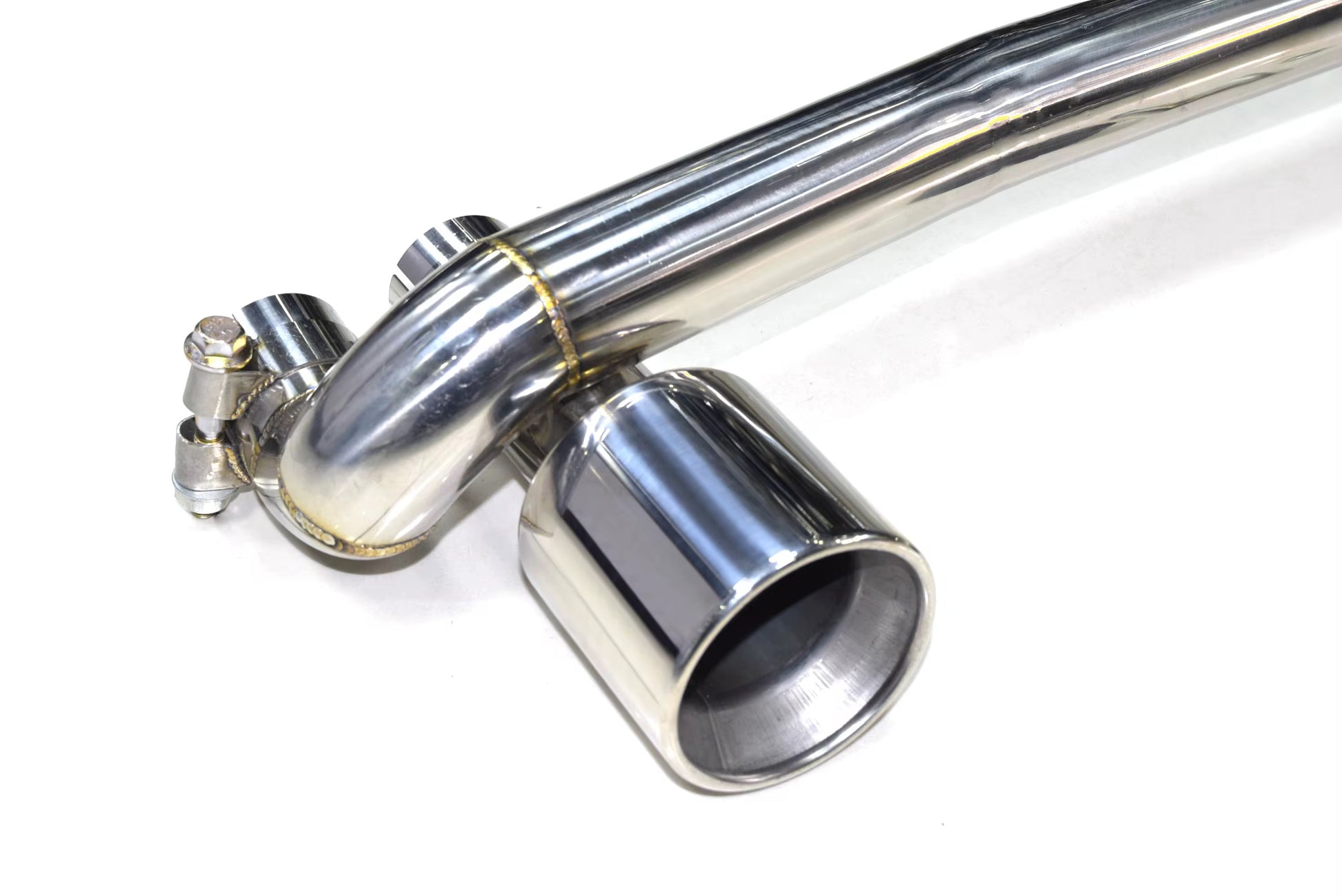 Denne bakre eksosdelen er utviklet for BMW F30 / F31, og gir et mer sportslig uttrykk visuelt. Løsningen er konstruert for montering på original lyddemper, noe som gjør installasjonen enkel og bolt-on for de fleste oppsett.