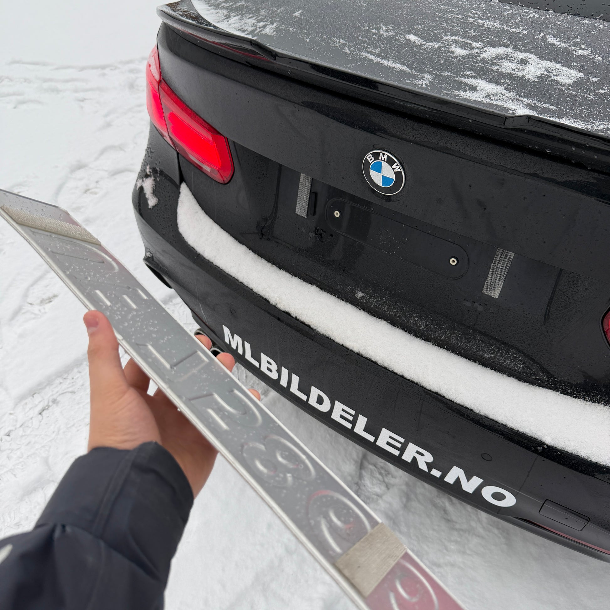 Settet erstatter din eksisterende skiltramme og festes med kraftig teip og borrelås for en solid og sikker montering. Løsningen er skånsom mot lakken og beskytter mot riper, samtidig som den gjør det enklere å rengjøre området bak skiltet. Resultatet er et renere og mer minimalistisk utseende på bilen.